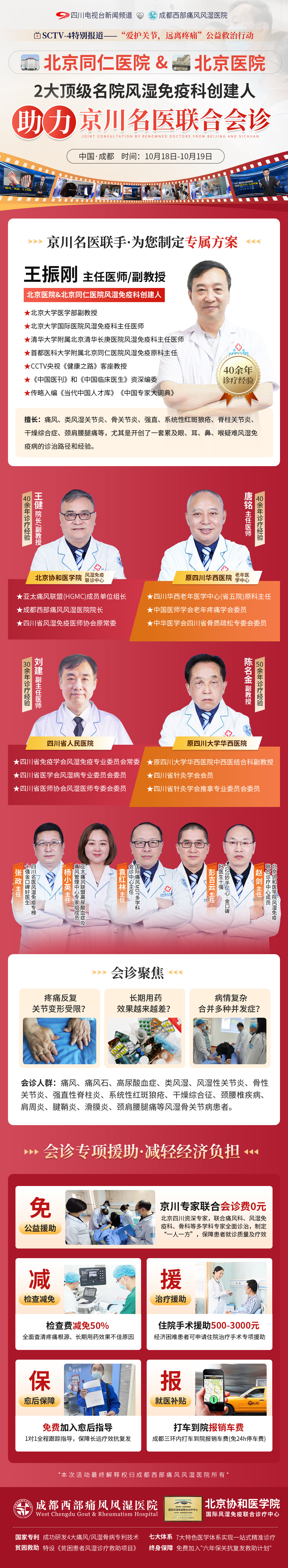 北京同仁医院&北京医院2大顶级名院风湿免疫科创建人王振刚教授亲临成都,助力京川名医联合会诊。